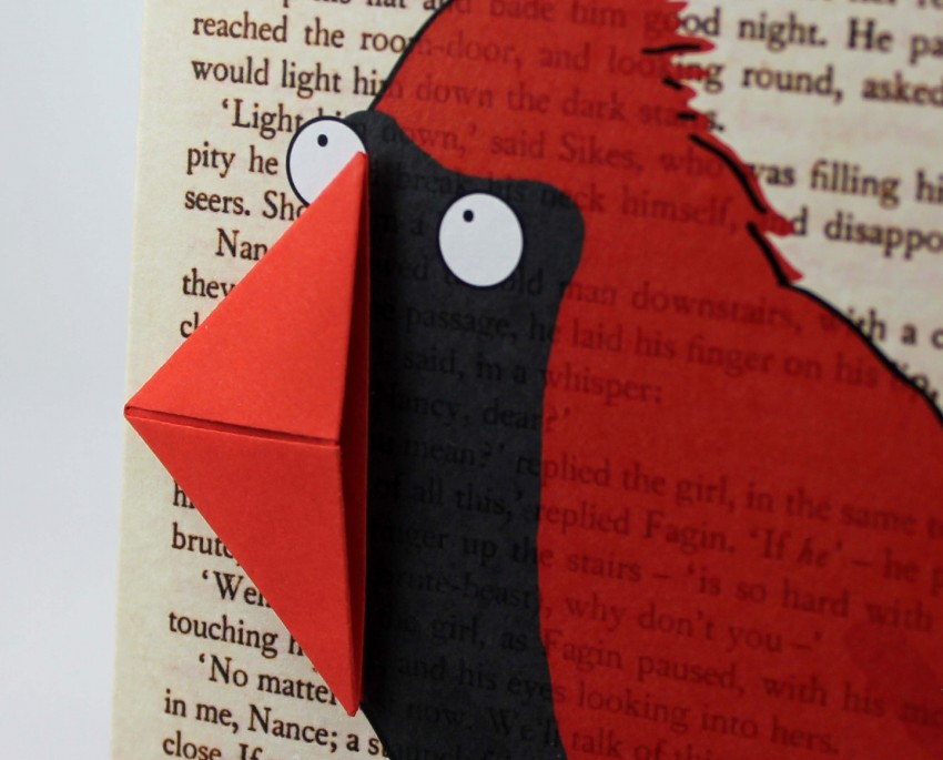 When you’ve finished with the card carefully remove the beak/bookmark then put your feet up and read a book. Slip the bookmark onto the corner of the page to keep your place when you go to get a drink to savour with the next chapter.