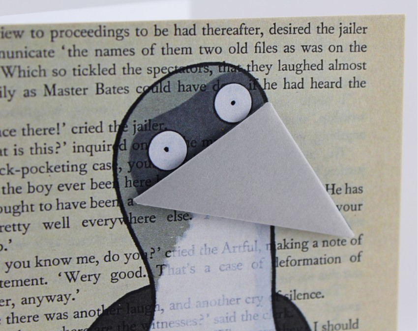 When you’ve finished with the card carefully remove the beak/bookmark then put your feet up and read a book. Slip the bookmark onto the corner of the page to keep your place when you go to get a drink to savour with the next chapter.