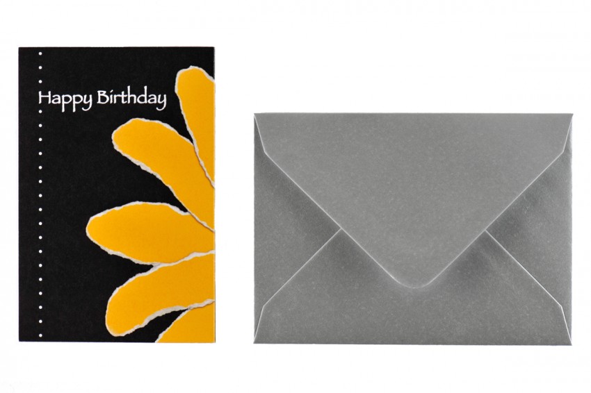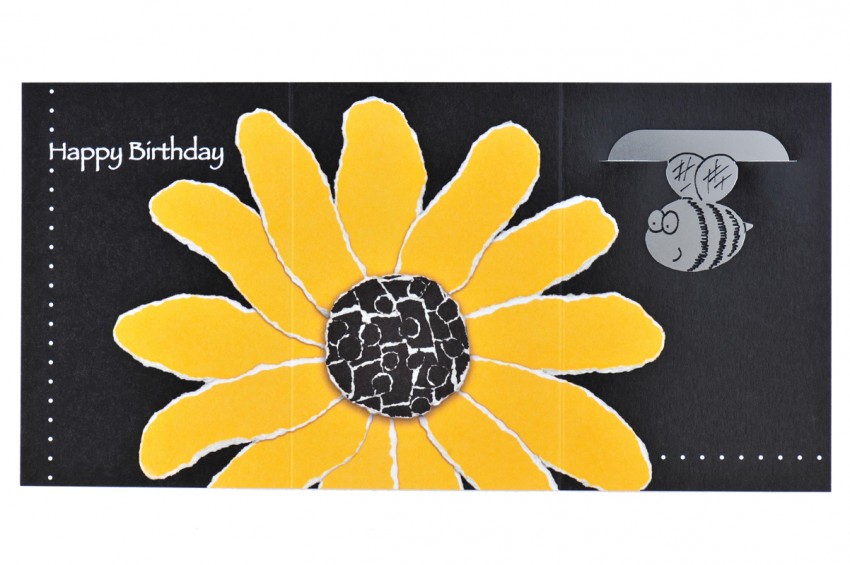 Birthday card featuring paper tear artwork of a rudbeckia flower.