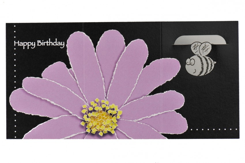Once removed from the silver coloured envelope the zig zag fold card opens out to reveal the full flower and stainless steel bee bookmark inside. The perfect keepsake gift for the reader, gardener, bee keeper... in your life.