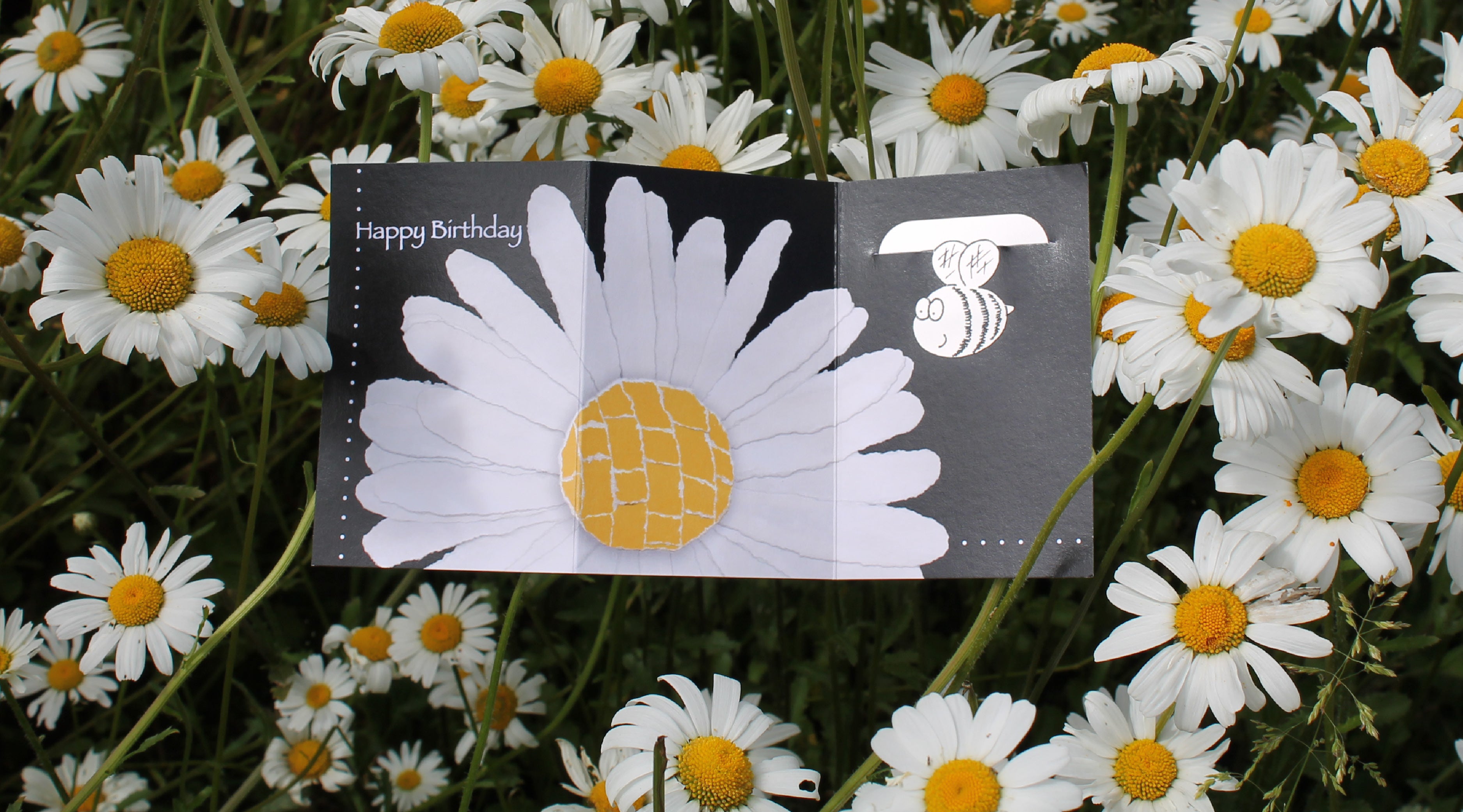 A selection of bold floral images including the ever popular Poppy, a traditional Rose and the more exotic Chocolate Cosmos (Did you know that those amazing plants really do smell like chocolate!). Each zig-zag fold card opens out to reveal the full flower and lovely stainless steel bee bookmark gift inside.